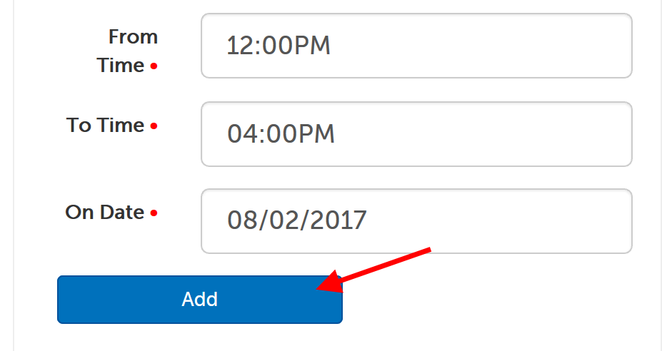 4. Click on the "From Time" field to have the timepick appear. Click a starting hour and then select minute value, in your account's time zone. Click "AM" or "PM" to indicate which is applicable.